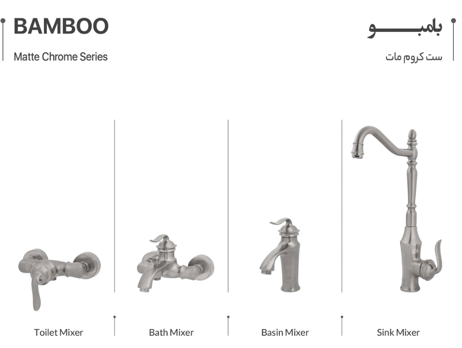 شیرآلات مدل بامبو یکی از پرفروشترین سریهای برند زرشام است که با طراحی الهامگرفته از خطوط طبیعت، جلوهای متفاوت به فضای آشپزخانه و سرویس شما میبخشد. بدنهی مقاوم، آبکاری پیشرفته در هفت رنگ جذاب و عملکرد روان، این مدل را به انتخابی مطمئن برای استفاده روزمره تبدیل کرده است.از آشپزخانههای مدرن گرفته تا سبکهای لوکس، بامبو کاملاً هماهنگ میشود و در هر رنگ، شخصیت خاص خودش را دارد: از کروم کلاسیک تا طلایی مات و مشکی طلایی که ظاهری لاکچری و چشمگیر ایجاد میکند.اگر به دنبال دوام، طراحی خاص و آبکاری ماندگار هستید، بامبو یکی از بهترین انتخابها در میان شیرآلات توکار و روکار است.