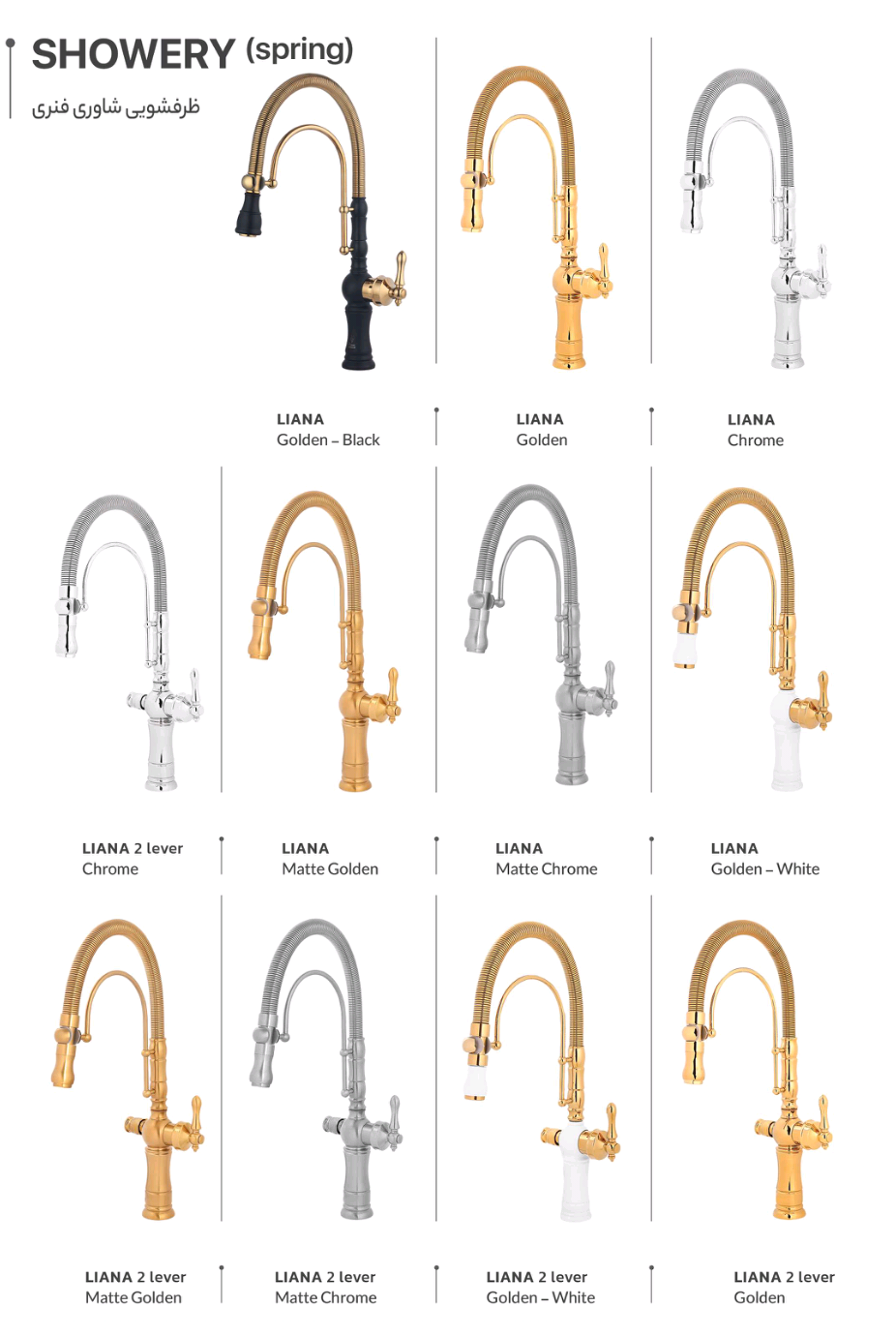 شیرآلات شاوری سری دیبا، فلت، لیانا و لیانا۲؛ ترکیب پویایی، کارایی و طراحی لوکس برای آشپزخانههای امروزی.