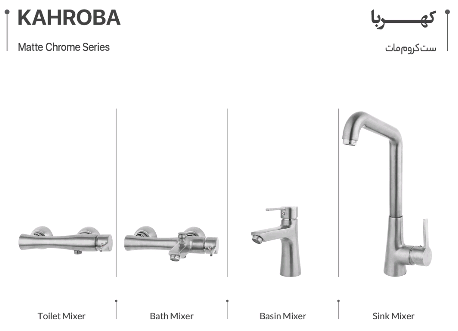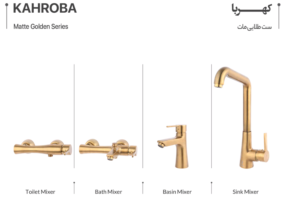 شیرآلات کهربا KAHROBA مجموعهای پریمیوم و خوشساخت است که برای فضاهای مدرن و کلاسیک طراحی شده. این سری با بدنه مقاوم، آبکاری چندلایه و کیفیتی ماندگار، سالها عملکرد روان و مطمئن را تضمین میکند.تنوع چهاررنگه این مدل—کروم، کروم مات، طلایی و طلایی مات—دست شما را برای هماهنگی با هر سبک دکوراسیون کاملاً باز میگذارد؛ از آشپزخانههای مدرن و مینیمال تا سرویسهایی با دکور کلاسیک و لوکس.جریان آب یکنواخت، کارتریج با طول عمر بالا و طراحی خوشفرم، این مجموعه را هم زیبا و هم کاربردی کرده است. اگر به دنبال شیرآلاتی هستید که هم چشمگیر باشد و هم ماندگار، سری کهربا انتخابی ایدهآل و آیندهدار برای خانه شماست.