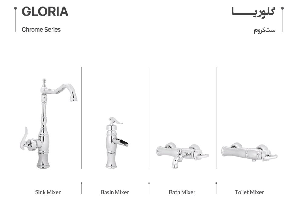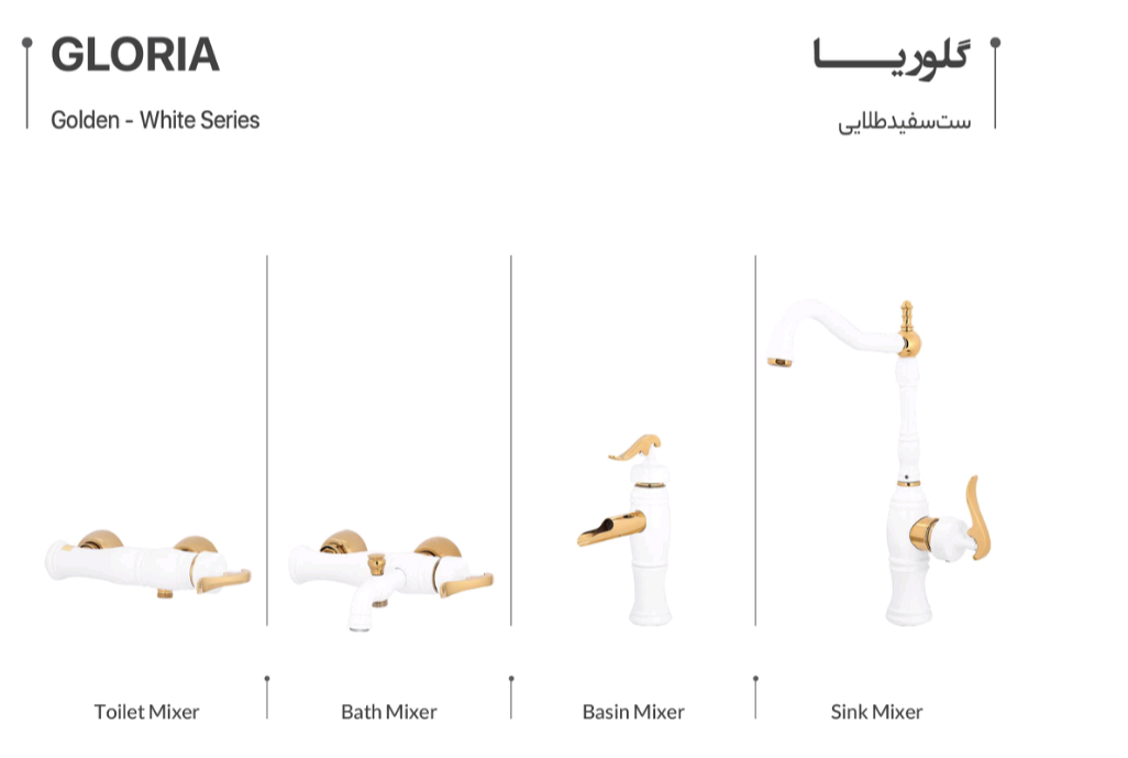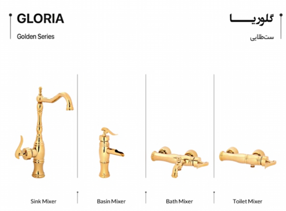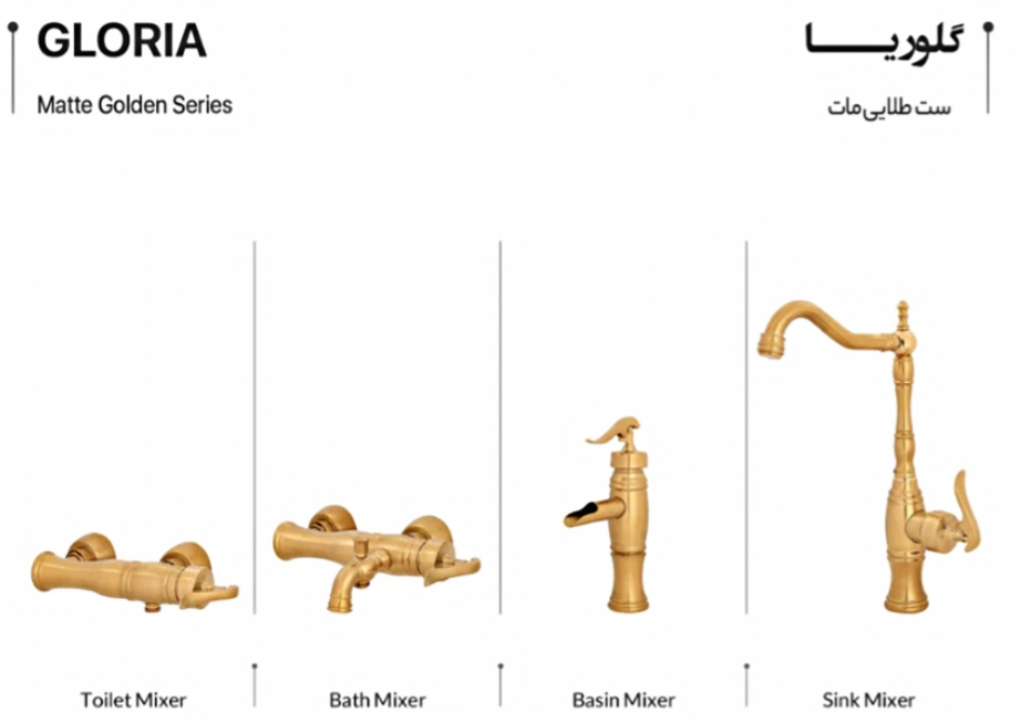 شیرآلات گلوریا؛ ظرافت لوکس، طراحی خوشفرم و چهار رنگ پرفروش برای فضاهای شیک و مدرن.