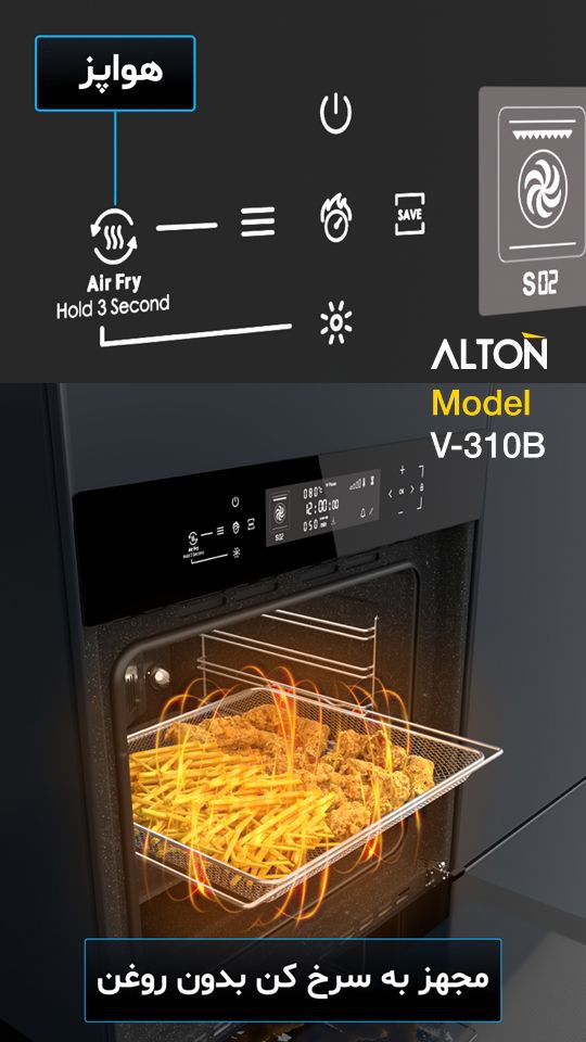 دارای هواپز با جریان هوای گرم، بدون نیاز به روغن، غذا را کاملاً یکنواخت و سریع طبخ میکند، در حالی که بافت ترد و طعم طبیعی آن حفظ میشود