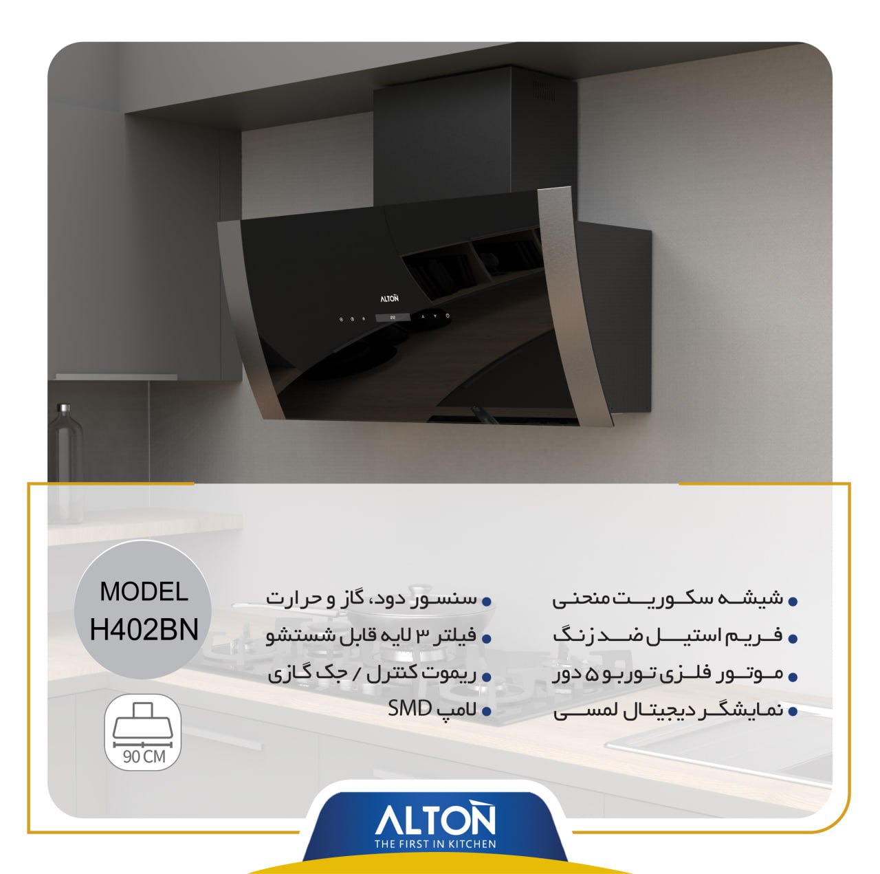 طراحی چشمنواز با عملکردی بیصدا و قدرتمند. هود مورب مدل H-402BN با جلوهی مشکی براق و کیفیت بالا، آرامش و زیبایی را همزمان به آشپزخانهتان هدیه میدهد.