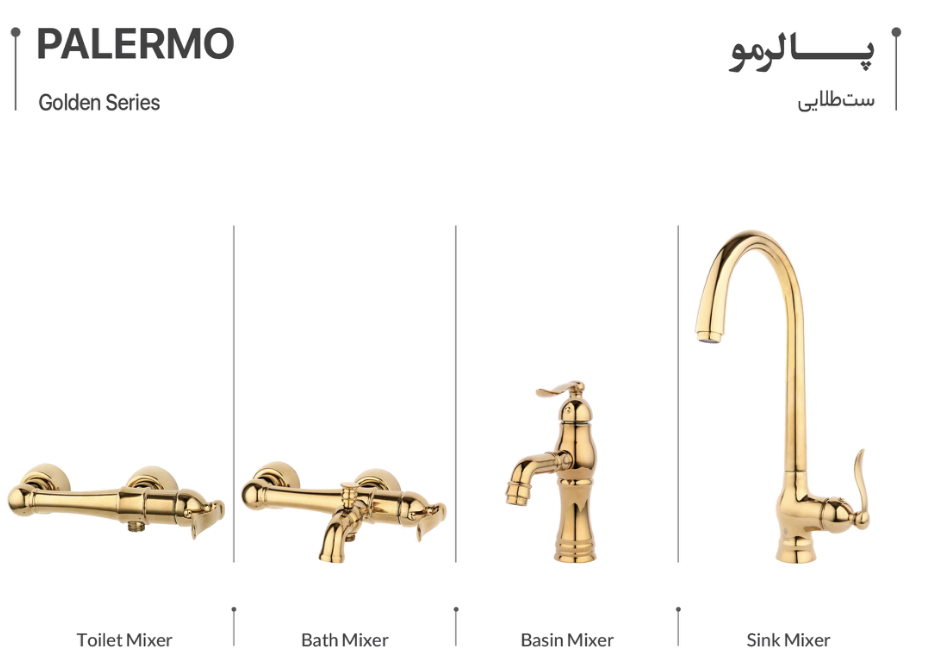 سری PALERMO با طراحی الهامگرفته از سبک کلاسیک، حس اصالت و ظرافت را به آشپزخانه و سرویس بهداشتی شما میآورد. بدنه مقاوم برنجی با آبکاری کروم یا طلایی، علاوه بر زیبایی، دوام طولانیمدت را تضمین میکند. مجموعهای شامل شیر ظرفشویی، روشویی، حمام و توالت برای علاقهمندان به طراحی لوکس و ماندگار.